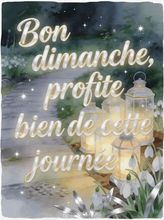 Les gifs scintillants bon dimanche donnent de l'éclat à un souhait simple et chaleureux; ils peuvent accompagner une jolie carte du dimanche, faire écho à un message bisous pour dimanche ou porter une pensée amicale du dimanche avec une note plus lumineuse.