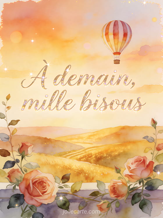 Gros bisous a demain dit l'attachement avec une formule claire et chaleureuse. Cette carte intensifie un bisous à demain plus discret, rejoint des gifs doux de fin de journée et complÚte une attention visuelle pour demain.