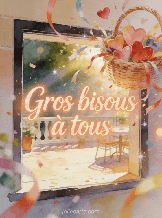 Un gros bisous à tous gif permet d'envoyer une pensée collective et chaleureuse, dans une formule qui s'accorde aussi avec un message à plus tard plein d'affection, des bisous de tendresse et plein de gros bisous animés, pour toucher chacun avec simplicité.