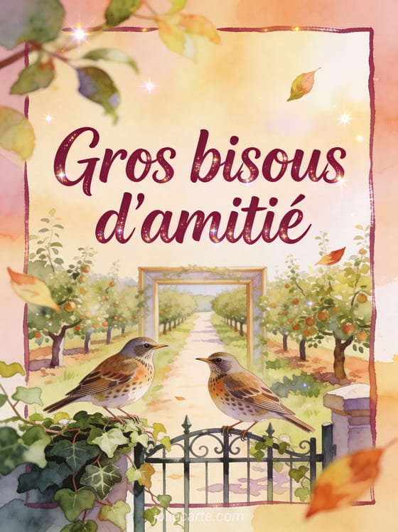 Gros bisous amities convient a un message amical franc et chaleureux, peut se prolonger avec une pensee pleine de soleil, gagner en generosite grace a mille marques d'affection ou prendre une tonalite plus attendrissante quand tu veux rester proche sans trop en dire.