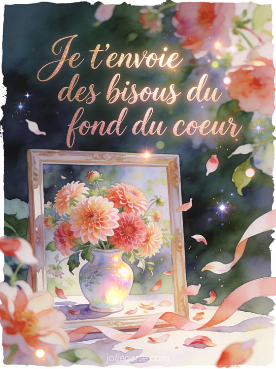 Gros bisous fleuris apporte une tendresse généreuse, douce et raffinée pour faire plaisir sans en faire trop. Pour prolonger cette intention, associez un message pour envoyer des bisous, une version animée pleine d'affection ou des bisous plus amusants à votre envoi du jour.