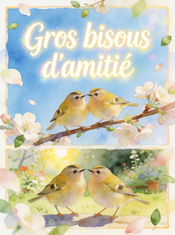 Gros bisous gif bisous amitié est parfait pour faire sentir votre présence avec chaleur et simplicité. Cette carte peut aussi accompagner des bisous d'automne, une pensée réconfortante qui fait du bien ou une carte cadeau de bisous selon la nuance que vous voulez transmettre.