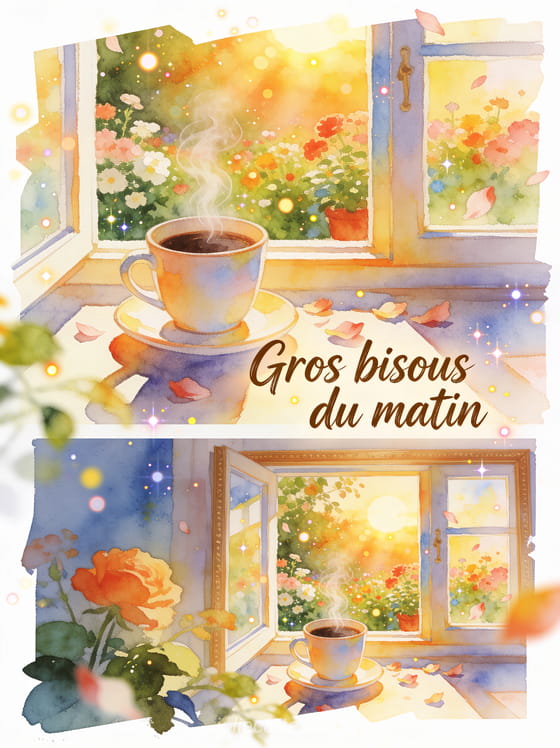 Cette carte gratuite autour de gros bisous du matin peut aussi accompagner un gif de bisous avec un singe, faire écho à des bisous venus de Provence et prolonger votre message avec un gif de bisous pour tout le monde, afin de commencer la journée avec une attention simple et affectueuse.