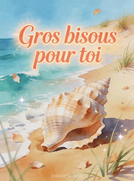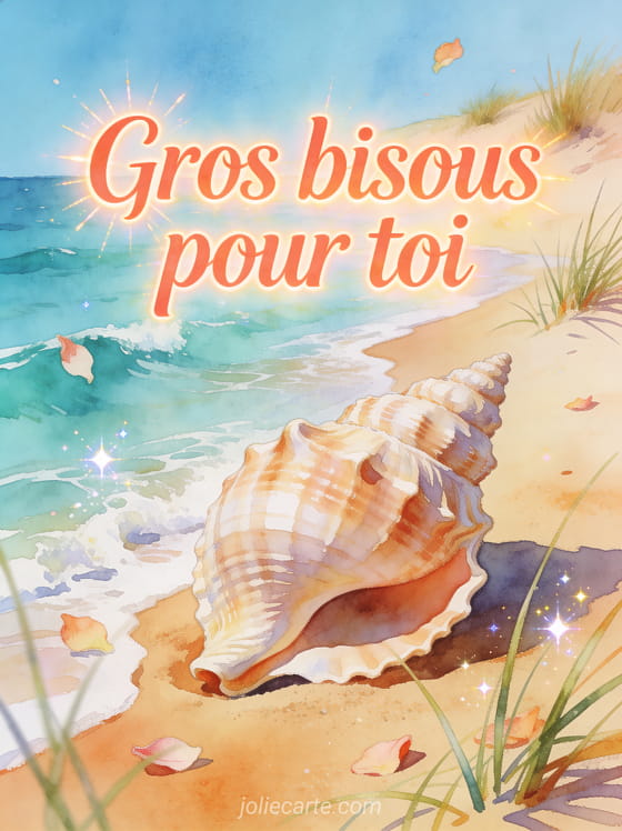 Gros bisous plage donne à votre message une sensation légÚre, solaire et affectueuse, parfaite pour faire sourire. Pour prolonger cette douceur, ajoutez des bisous tendrement envoyés, de gros bisous pleins de tendresse ou un enfant qui fait des bisous à votre sélection.