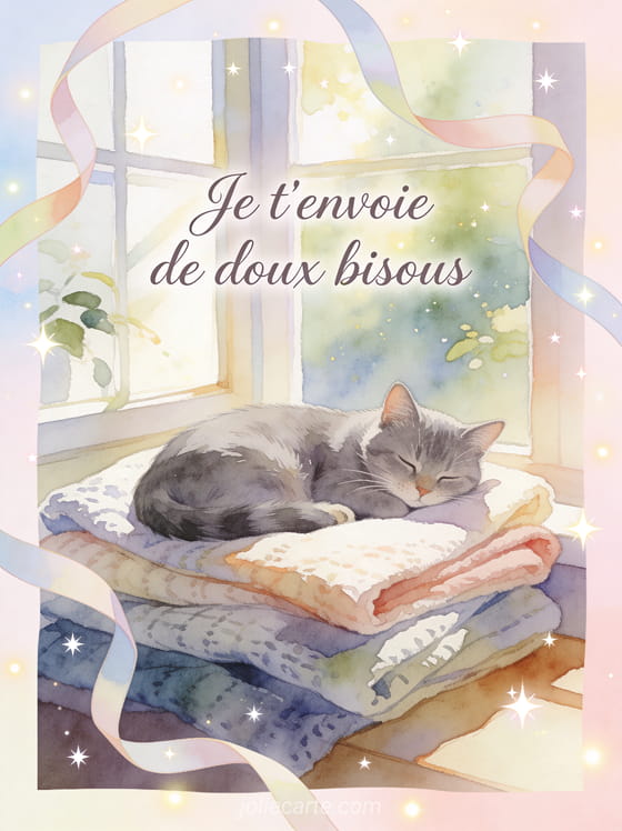 Cette carte gratuite autour de gros bisous tout doux peut aussi accompagner un chat qui envoie des bisous, faire écho à un gif de bisous de chien et prolonger votre message avec un gif pour envoyer des bisous, afin de garder une attention apaisante et pleine de douceur.