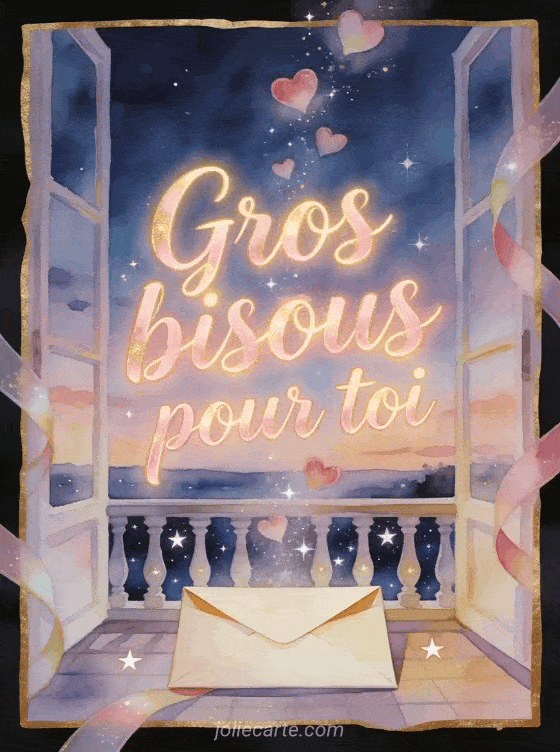 Bisous gif animé gratuit · Jolie carte virtuelle bisous · Image bisous animé · Message bisous doux · Cartes virtuelles bisous gratuites