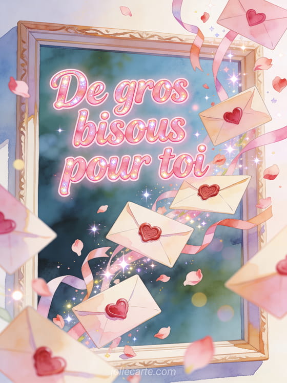 Grosses bisous exprime une tendresse franche et immédiate, parfaite pour réchauffer quelqu'un en quelques mots. Pour compléter ce message, ajoutez une image animée de gros bisous, des bisous fleuris ou un ours qui envoie des bisous selon l'effet recherché.