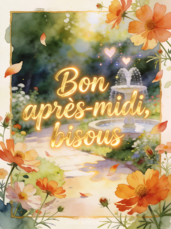 Image bel après midi bisous sert à envoyer une pause affectueuse au cœur de la journée, avec un message bref et chaleureux. Elle peut accompagner un souhait d'après-midi adressé à tous, alléger le ton avec une note drôle pour l'après-midi ou devenir une pensée tendre pour mon cœur.