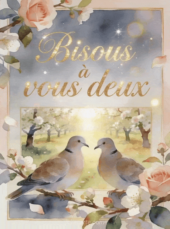 Une image bisous Ă vous deux est idĂ©ale pour envoyer une mĂȘme pensĂ©e affectueuse Ă un duo proche de vous. Cette carte peut aussi se prolonger avec une version autour d'un poisson affectueux, une carte de bisous animĂ©s ou une photo de bisous pleine de malice selon l'esprit recherchĂ©.