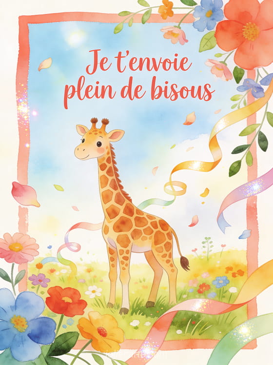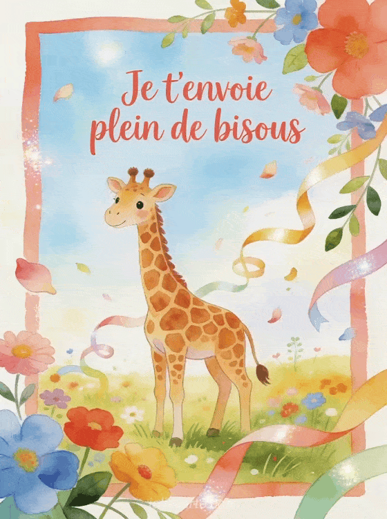 Cette image bisous girafe apporte une touche tendre et originale a vos messages affectueux. Elle s'accorde avec une carte remplie de bisous, prolonge un envoi genereux de baisers et rejoint une attention douce autour d'un chat pour varier les declarations avec legerete.