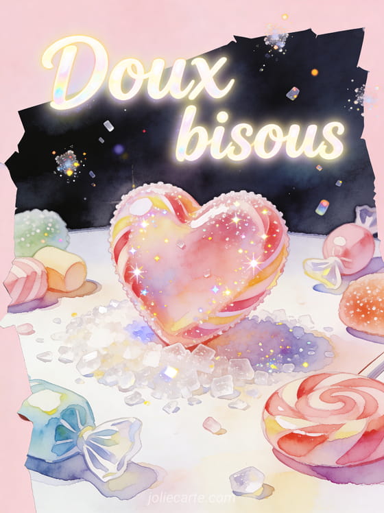 Une image bisous sucre est ideale pour faire passer un message tendre avec une note legere. Cette carte gratuite se complete bien avec un ours qui envoie des bisous animes, des bisous a partager a deux et des bisous encore plus affectueux selon le ton que vous voulez donner.