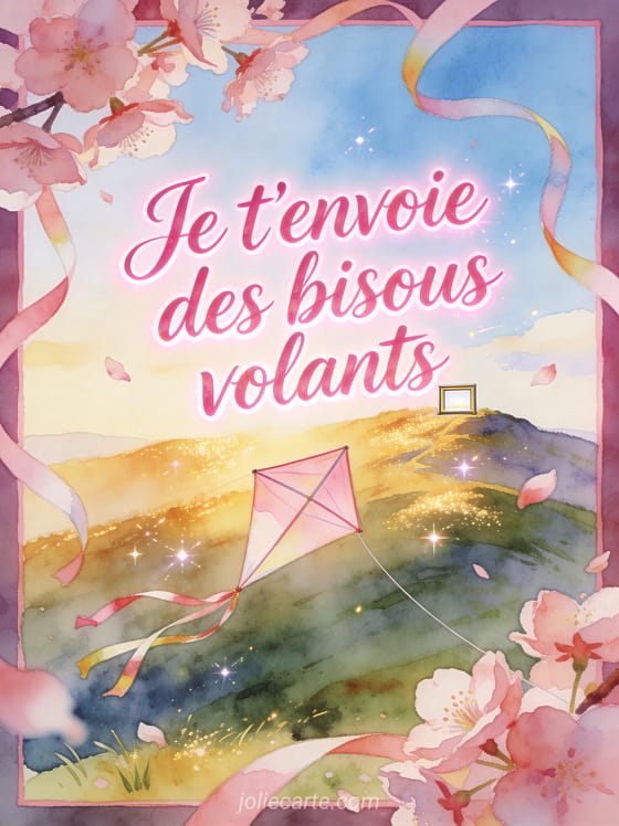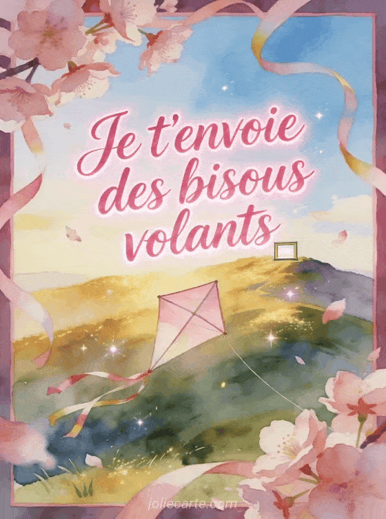 Une image bisous volant est idéale pour transmettre une attention légÚre, joyeuse et pleine d'élan. Cette carte gratuite peut aussi s'associer à des bisous entre koala et panda, à des bisous trÚs chaleureux et à des bisous faits pour rassurer afin d'ajuster votre message à l'instant.