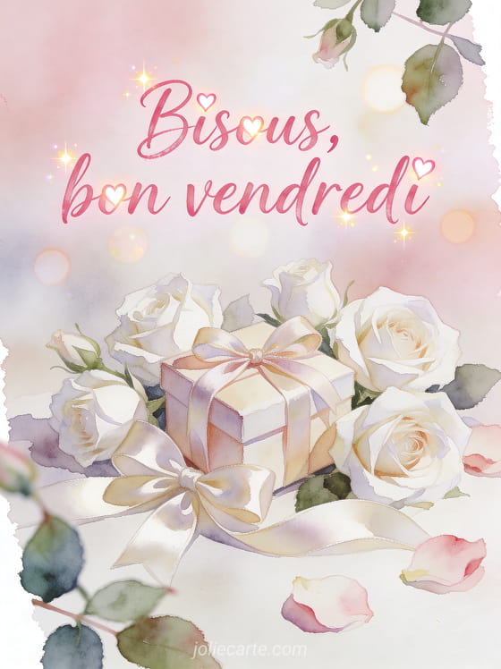 Une image bonjour vendredi bisous permet d'ouvrir la journée avec affection, en ajoutant un bonjour animé du vendredi, une attention gratuite à envoyer ou une carte simple pour vendredi à ton message.