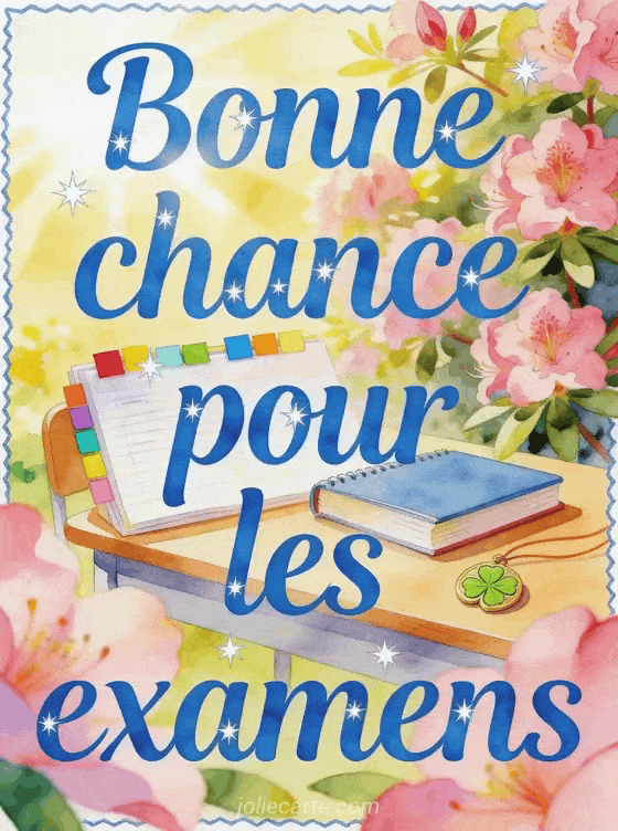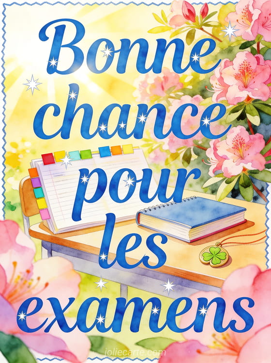 Une image bonne chance pour les examens donne un soutien clair avant une période importante, avec un symbole de trÚfle, un texte qui rassure et un souhait pour la suite quand il faut encourager sans pression.