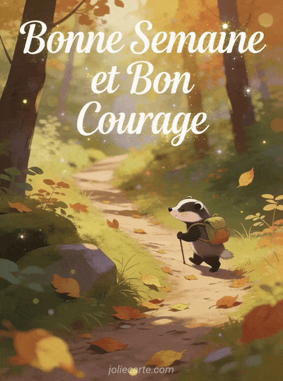 Image Bonne Semaine et Bon Courage envoyez ce petit blaireau déterminé pour encourager vos proches et leur souhaiter une bonne semaine.