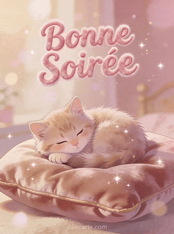 Cette image bonne soirée chaton met en scÚne un adorable petit félin blotti sur son coussin. Impossible de résister à tant de mignonnerie. Explorez aussi notre bonne-soiree avec chaton, notre carte-bonne-soiree féerique et notre soiree-bonne tropicale.