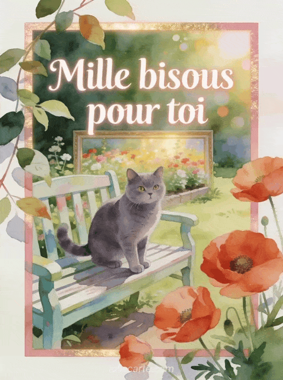 Gif chat qui envoie des bisous · Gif bisou · Jolie carte gros bisous · Image belle journée bisous · Carte big bisous