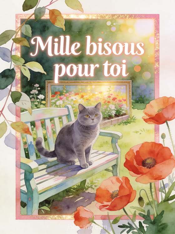 Une image chat bisous est parfaite pour faire passer une attention tendre et spontanée. Cette carte gratuite peut aussi s'accompagner de bisous et bises à partager, de cinquante bisous pour voir plus grand et de plusieurs idées de bisous à offrir afin d'adapter le message.