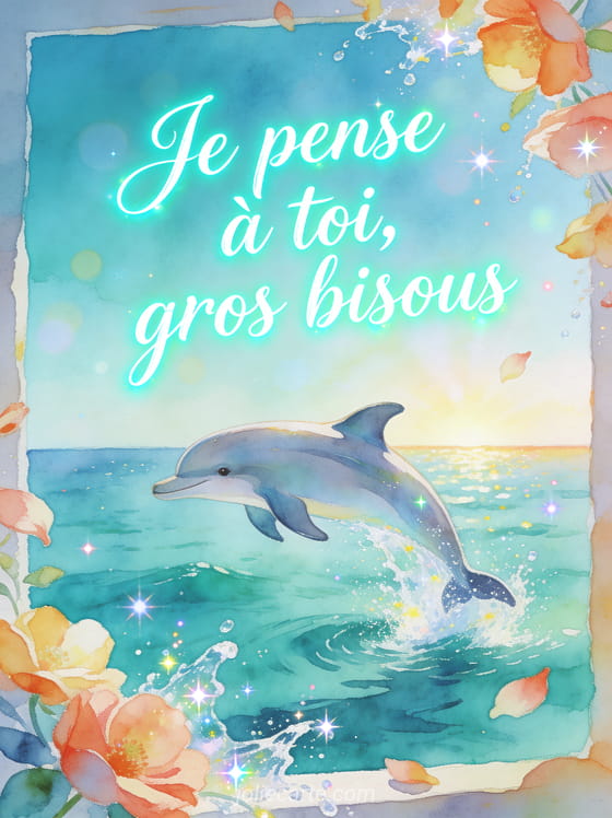 Une image dauphin bisous convient trÚs bien pour transmettre une affection vive, légÚre et pleine d'élan. Cette carte peut aussi se relier à des bisous déposés sur la main d'un bébé, des images de gros bisous ou des bisous pensés pour un couple selon la personne visée.