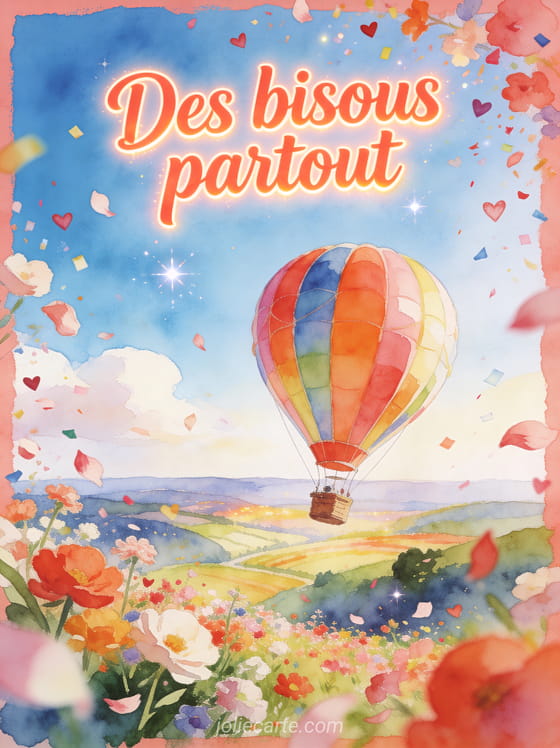 Une image de bisous partout convient trÚs bien pour transmettre une affection débordante et spontanée. Cette carte peut aussi s'accorder avec des bisous tout en rose, une version mignonne avec des poissons ou un chat qui fait des bisous pour varier le registre sans perdre la tendresse.