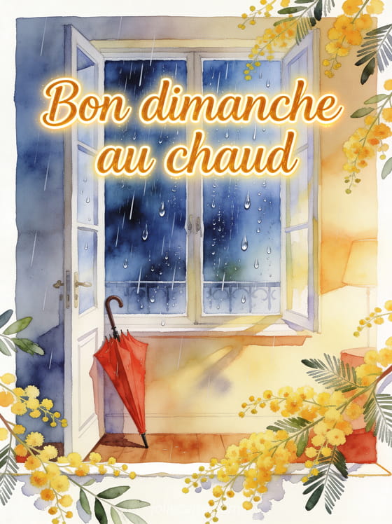 Une image de bon dimanche pluvieux transforme le mauvais temps en occasion d'envoyer du réconfort; elle peut rejoindre un dimanche fleuri malgré le temps, compléter un gif pour souhaiter dimanche ou devenir une carte virtuelle gratuite du dimanche pleine de chaleur.