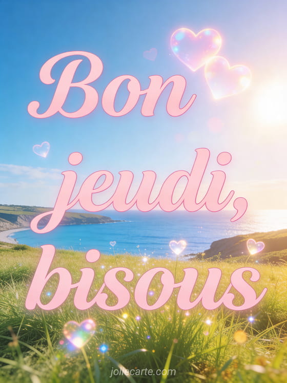 Une image de bon jeudi bisous rend le message plus affectueux, tout en restant simple à envoyer. Elle peut suivre un bon jeudi en image gif, reprendre un gif animé pour jeudi ou adoucir un bon jeudi en image.