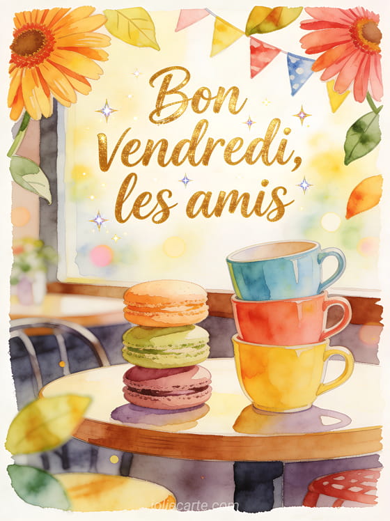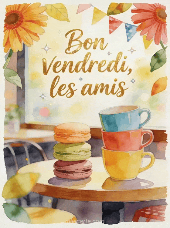 Une image de bon vendredi les amis rassemble facilement plusieurs destinataires autour d'un message simple; elle peut suivre des bisous de vendredi en mouvement, compléter un bon vendredi illustré ou devenir un vendredi en gif à partager dans une conversation amicale.