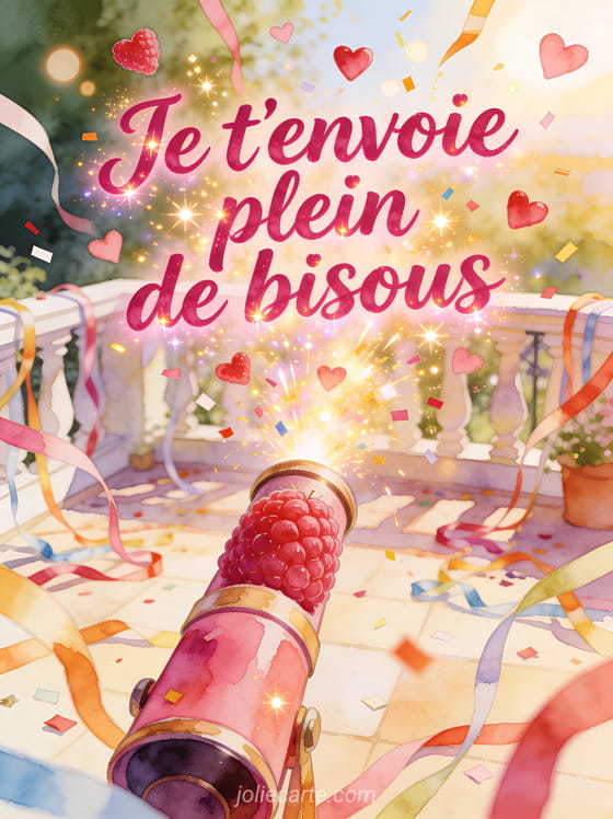 Image explosion de bisous donne tout de suite plus d'elan a ton message, en melangeant des bisous remplis de tendresse, des bisous qui sentent la plage et un envoi plein de bisous pour transmettre une attention genereuse, spontanee et tres facile a partager.