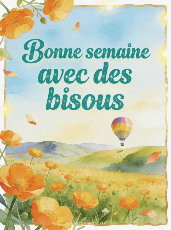 Cette carte image gratuite bonne semaine bisous offre une solution rapide pour partager un souhait affectueux sans complication. Elle reprend un gif de semaine avec bisous, prolonge un voeu de trÚs belle semaine et rejoint une version animée pleine de tendresse.
