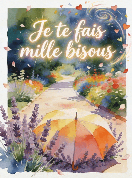 Image ouragan de bisous convient à un message débordant d'affection, surtout si tu l'équilibres avec une note de bisous zen, avec de gros bisous en gif ou avec une évocation douce du rêve pour garder une énergie vive, tendre et très entraînante.
