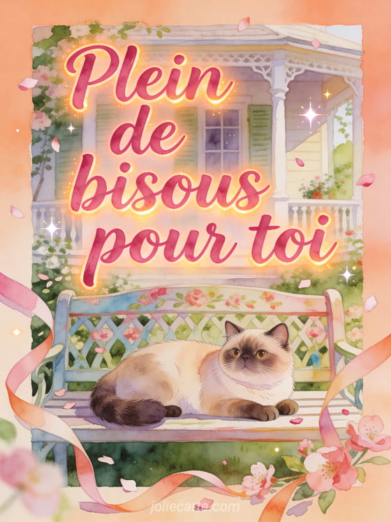 Une image plein de bisous animaux permet d'envoyer une attention tendre et chaleureuse, avec une phrase qui reste vivante grĂące Ă un bisou façon raton laveur, une tendresse en forme de cĆur et de gros bisous bien sentis, pour toucher juste sans en faire trop.