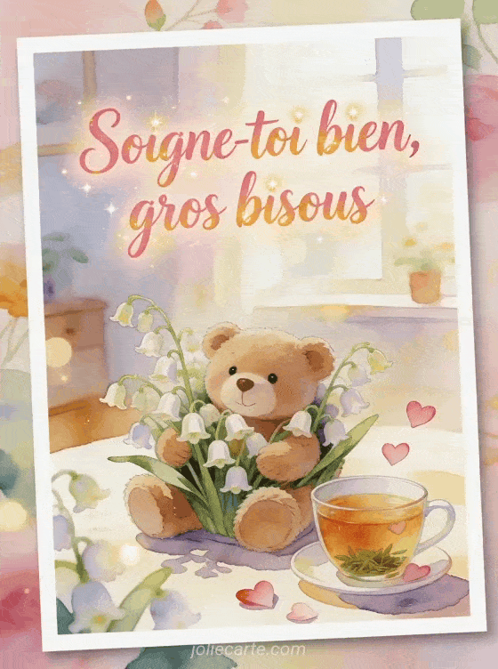 Image soigne toi bien bisous est ideale pour envoyer du reconfort a quelqu'un qui en a besoin, puis prolonger cet elan avec des bisous volants en gif, un big bisous a partager ou des bisous tendresse tres doux afin de garder un message simple, humain et naturel.