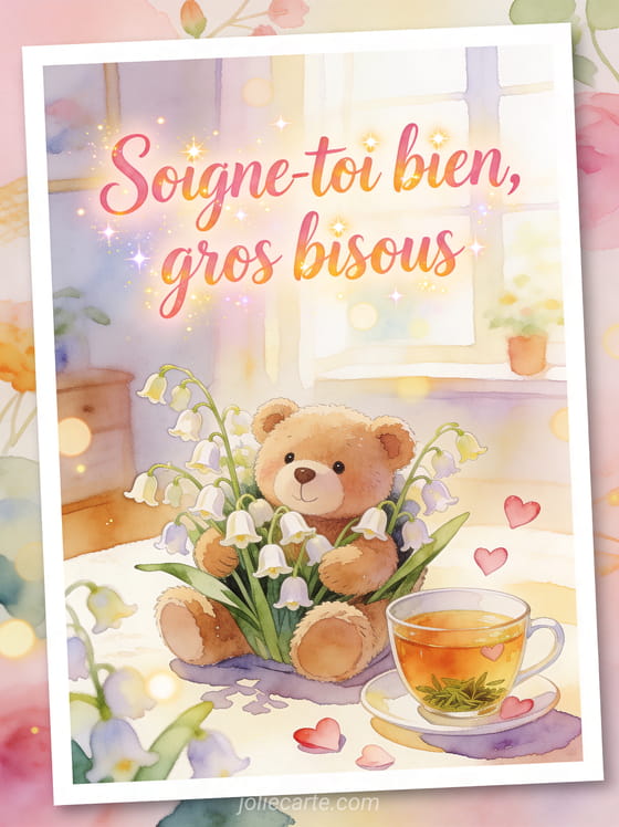 Soigne-toi bien, gros bisous pour souhaiter un prompt retablissement avec une attention affectueuse