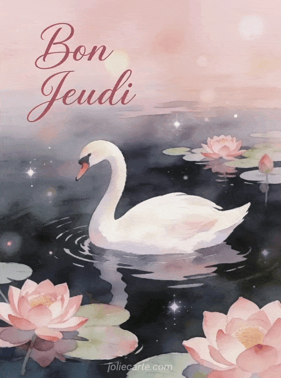 Images Bon Jeudi un cygne élégant sur un étang de nénuphars