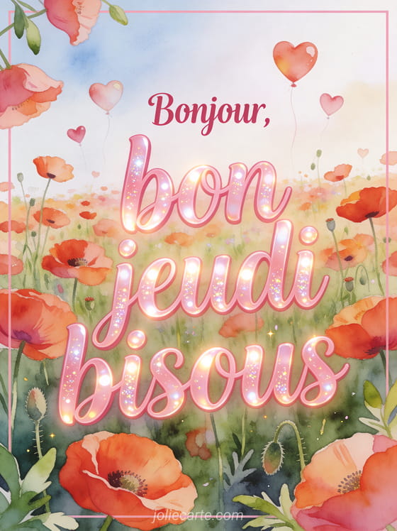 Images de bonjour bon jeudi bisous apporte une touche affectueuse au message du jour. Cette carte complÚte un texte pour souhaiter jeudi, rejoint un bon jeudi adressé aux amis et s'accorde avec une citation pensée pour jeudi pour envoyer douceur et bonne humeur.
