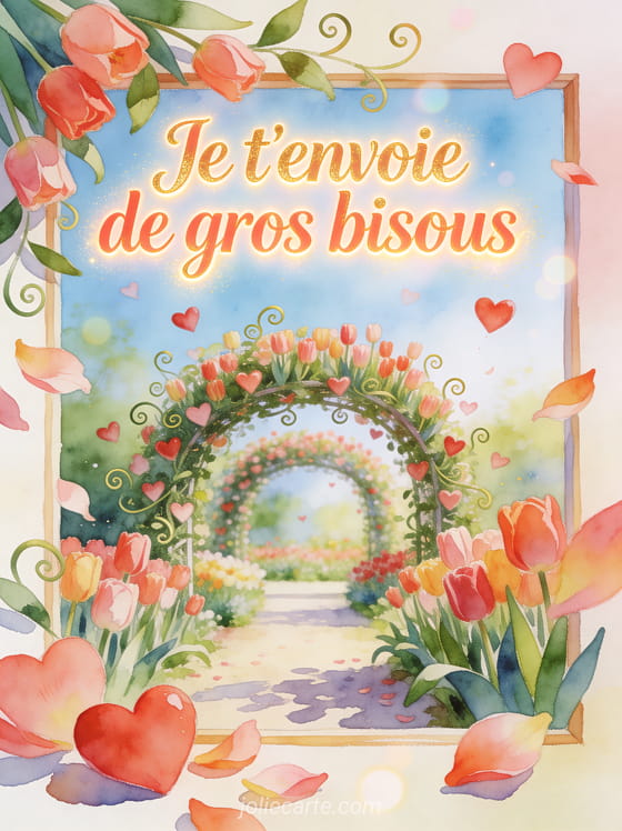 Pour des images gros bisous fleurs, cette carte combine un message genereux avec une ambiance pleine de douceur. Elle peut accompagner une image animee remplie de bisous, convenir a des bisous du lundi et prolonger un gif de bisous tout doux et sucres dans le meme esprit.