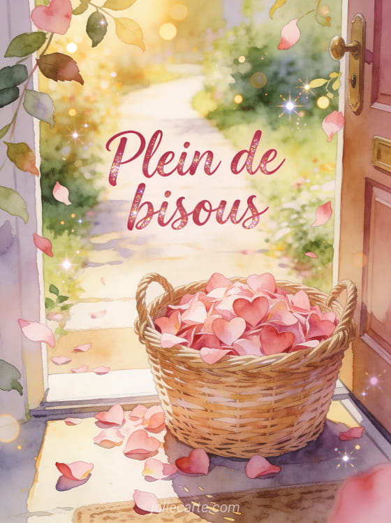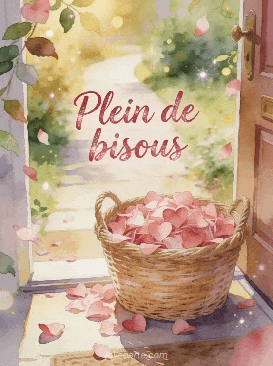 Bisous sucrés · Images convoi de bisous · Image de corbeille de bisous · Bisous de nous trois · Gif animé des milliers de bisous