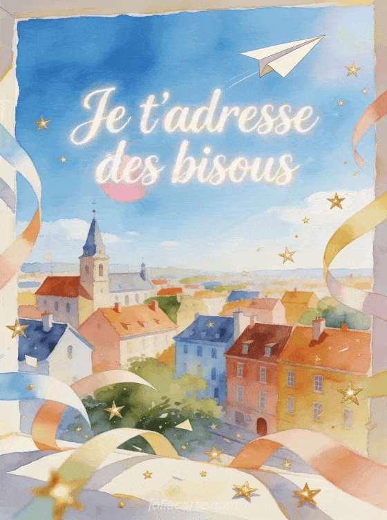 Je t'envoie des bisous est une formule directe et affectueuse, parfaite pour garder le lien vivant dans un petit message du quotidien, surtout si vous la faites resonner avec de belles attentions animees, de gros bisous d'amitie et une pluie de bisous tout doux afin de lui donner plus de relief sans la surcharger.