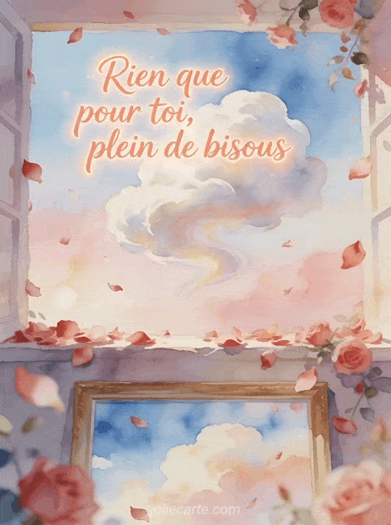 Quand tu veux dire je t'envoie un nuage de bisous, cette carte donne un ton leger et affectueux a ton message. Elle se marie avec une image de bisous pleine de tendresse, rejoint une animation de bisous toute simple et prolonge des images animees remplies de bisous sans perdre en douceur.
