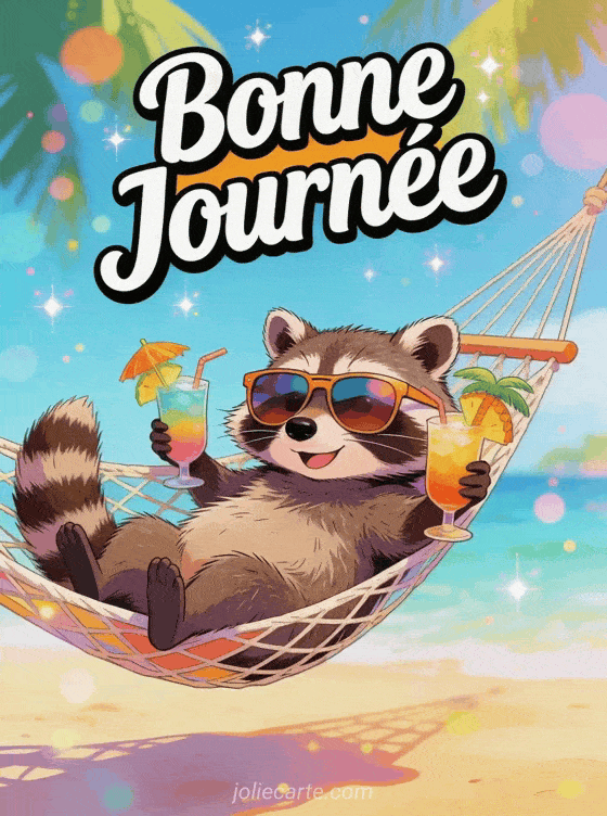 Jeudi Humour Bonne Journée un raton laveur en mode vacances pour bien rigoler