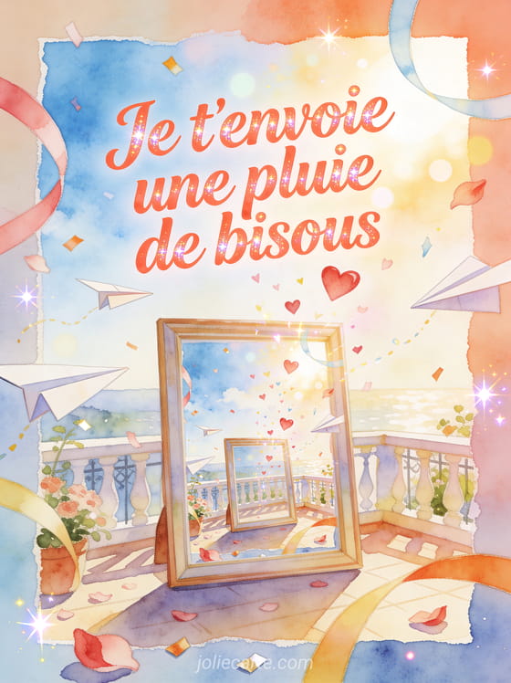 Lancer de bisous donne à votre message une énergie affectueuse et légÚre, idéale pour surprendre avec tendresse. Pour compléter cet envoi, associez plein de bisous pour toi, une souris pleine de bisous ou des bisous pour le réveil selon l'humeur recherchée.