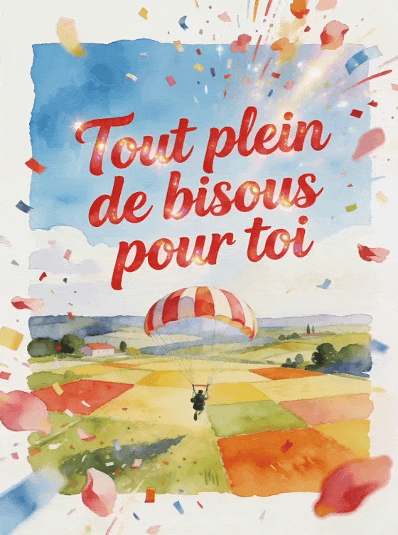 Avec largage de bisous, cette carte donne un ton joueur et genereux a l'envoi. Elle peut s'associer a une image de bisous en format XXL, faire echo a une trace de bisous laissee en image et prolonger un poeme en bouquet de bisous pour varier les attentions.