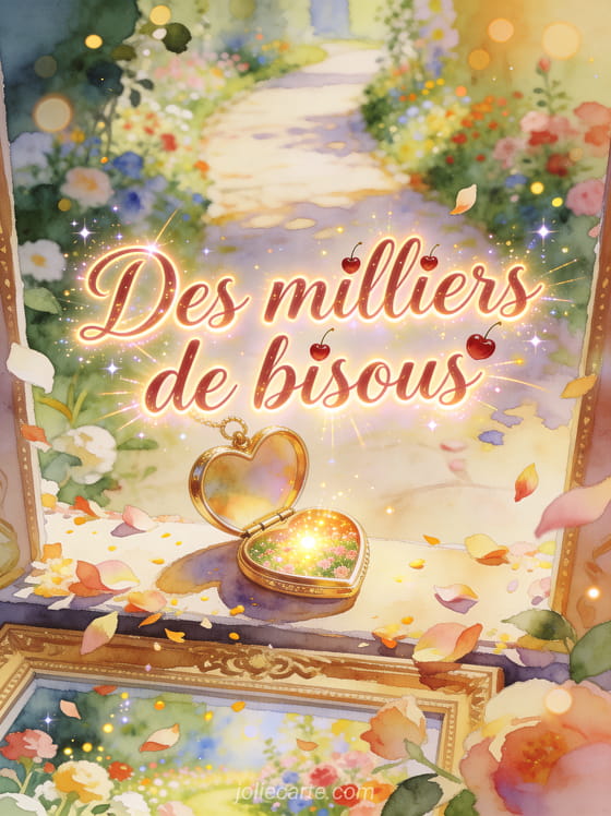 Cette carte gratuite autour d’un cœur rempli de bisous peut aussi accompagner des gifs de bisous avec un ourson, faire écho à un gif de bisous façon ange et prolonger votre message avec un texte de bisous tout en tendresse, afin d’exprimer une affection sincère sans en faire trop.