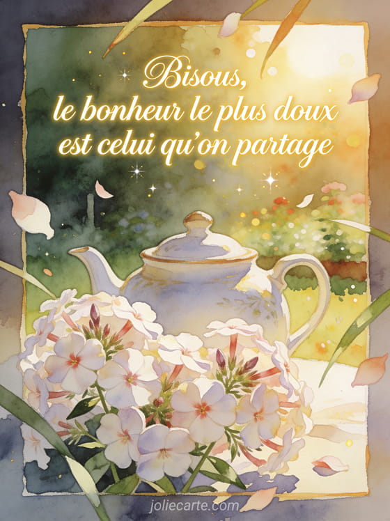 Bisous, le bonheur le plus doux est celui qu'on partage une citation douce pour rappeler que le bonheur se partage