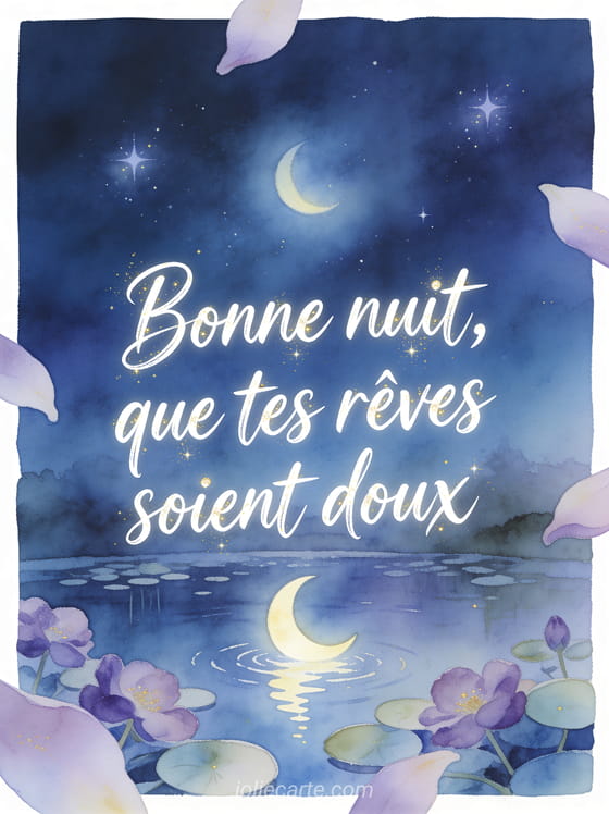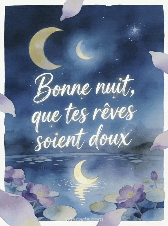 Les plus beaux message de bonne nuit sont ceux qui rassurent avant de dormir, comme une carte de bonne nuit gratuite, une pensĂ©e sous la lune ou un souhait pour une bonne nuit. Cette carte transmet douceur, calme et beaux rĂȘves.