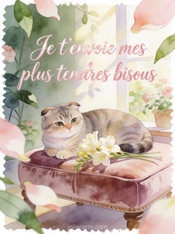 Mes bisous trouvent facilement leur place dans un message personnel, surtout si tu veux les renforcer avec de gros bisous en gif fleuri, les adresser aussi a vous deux avec la meme tendresse ou ajouter un papillon de bisous anime pour une attention encore plus douce.
