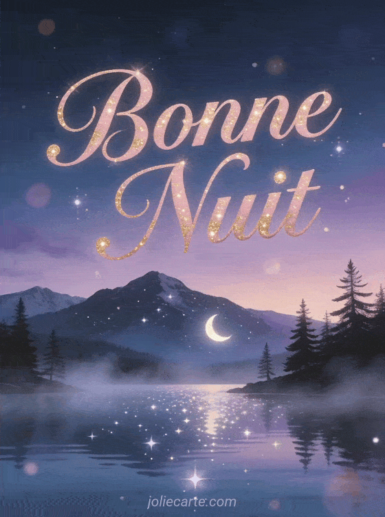Ce message de bonne nuit capture la sĂ©rĂ©nitĂ© d'un lac de montagne reflĂ©tant mille Ă©toiles et le croissant de lune, crĂ©ant un miroir parfait entre ciel et terre. La brume lĂ©gĂšre qui s'Ă©lĂšve de l'eau calme ajoute une touche de mystĂšre Ă cette scĂšne nocturne d'une beautĂ© saisissante. Partagez Ă©galement un souhait de beaux rĂȘves pour accompagner vos proches vers le sommeil. Les silhouettes des pins sur la rive se dĂ©coupent dĂ©licatement dans ce paysage oĂč le bleu profond de la nuit se mĂȘle aux reflets argentĂ©s de la lune. Cette image invite Ă la contemplation et Ă la paix intĂ©rieure, idĂ©ale pour clore une journĂ©e en douceur avec ceux que vous aimez. Envoyez aussi une nuit Ă©toilĂ©e pleine de tendresse pour varier vos messages nocturnes. Offrez ce moment de tranquillitĂ© absolue pour que vos proches puissent s'endormir le coeur lĂ©ger et l'esprit apaisĂ©. Une image de bonne nuit complĂ©tera parfaitement vos souhaits du soir.