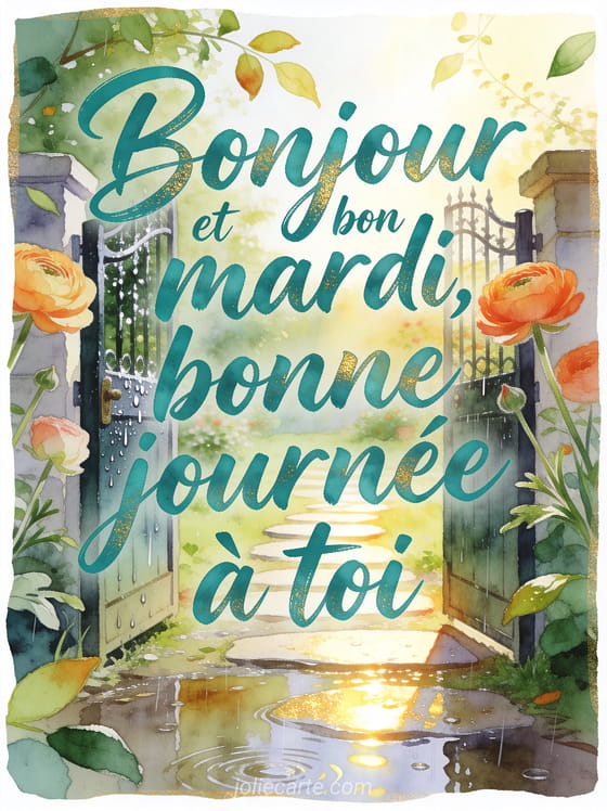 Un message de bonjour et bon mardi permet d'offrir une attention claire dÚs le matin. Cette carte accompagne un mardi ensoleillé à partager, complÚte une formule pensée pour souhaiter mardi et rejoint un bon mardi animé avec légÚreté.