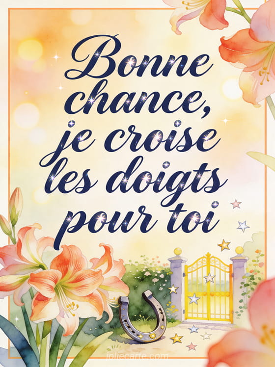 Un message de bonne chance doit aller droit au cĆur: cette carte permet d'encourager avant une Ă©tape importante, de rejoindre un au revoir confiant, d'appuyer un nouveau dĂ©part professionnel ou de choisir quelques mots porte-bonheur faciles Ă envoyer.