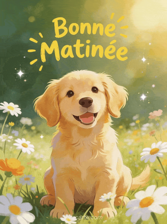 Ce message de bonne matinée rayonne de bonne humeur avec son chiot adorable. Variez avec une matinée fleurie, une carte humour ou un message joyeux.